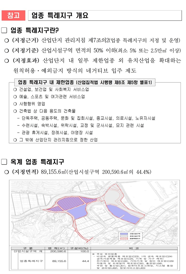 옥계지구는 산업시설구역의 44.4%를 업종 특례지구로 지정해 다양한 산업을 유치할 수 있는 기반과 입주 수요에 유연하게 대응할 수 있는 여건을 갖췄다.