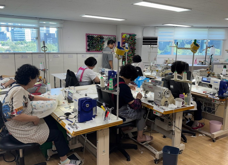 | ▲ 다복꾸러미 제작 중인 ‘할머니와 재봉틀’ 고양시니어클럽 |