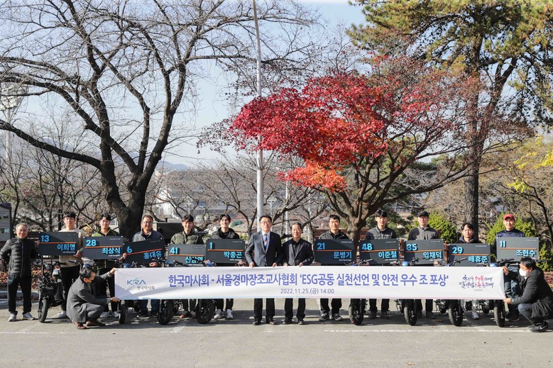 공동선언에 이어 안전 우수 조에 선정된 10개조에 친환경 전동스쿠터 10대를 포상하는 전달식이 이어졌다. 전달식에 앞선 지난 10일 ESG의 S분야(안전) 활성화를 위해 마사회와 조교사협회 안전전문가 5인으로 구성된 합동점검단의 깜짝 안전점검이 실시됐다. 점검단은 서울경마장 마사지역 내 화재위험, 위험물질 관리 및 사고발생건수 등을 중점적으로 살폈으며 안전관리가 가장 우수했던 10개 조를 선발해 전동스쿠터를 포상한 것이다.