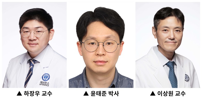 | ▲(왼쪽부터) 연세대학교 용인세브란스병원 류마티스내과 하장우 교수, 연세대학교 의과대학 윤태준 박사, 세브란스병원 류마티스내과 이상원 교수.(사진=용인세브란스병원) |