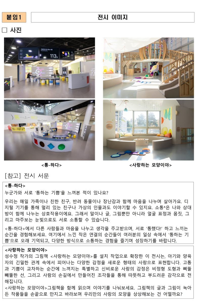 서울상상나라는 올해 이어진 변화들을 기반으로 2026년에는 어린이의 정서·소통 발달을 중심에 둔 전시·교육을 지속 확대해 나갈 계획이다. 다문화·초고령 사회로의 변화와 세대 간 갈등이 심화되는 시대 흐름 속에서 ‘소통 역량’을 미래 시민의 핵심 능력으로 보고, <통-하다>를 시작으로 내년에는 1층의 예술놀이 영역을 ‘소통’을 주제로 순차적으로 재구성할 예정이다.