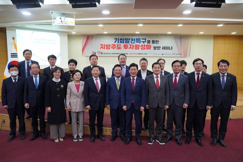 [세계타임즈 = 이채봉 기자] 국민의힘 구자근 국회의원 ( 경북구미갑 , 국회 산업통상자원중소벤처기업위원회 ) 이 17 일 ( 금 ), 국회의원회관 제 2 소회의실에서 ‘ 기회발전특구를 통한 지방주도 투자활성화 방안 ’ 세미나를 개최했다고 밝혔다 .