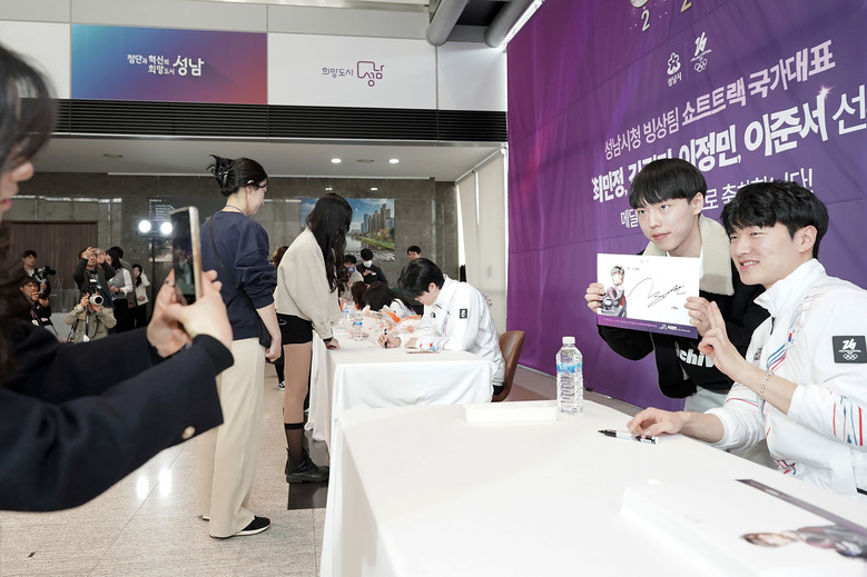 성남시는 이날 팬 사인회에 앞서 행사장에서 시청 빙상팀 선수단에 총 3억7500만원의 포상금을 전달했다.