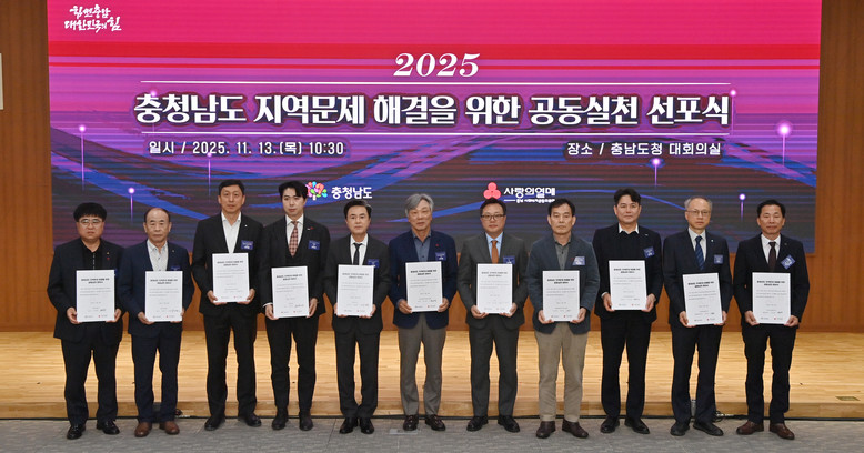 도는 13일 도청 대회의실에서 김태흠 지사를 비롯해 성우종 공동모금회장, 충남 나눔명문기업 대표 및 임직원 등 80여 명이 참석한 가운데, ‘지역문제 해결을 위한 공동실천 선포식’을 개최했다.