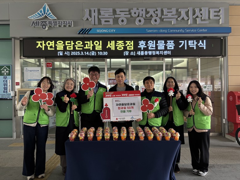 이날 기부된 과일은 새롬동 지사협을 통해 저소득 취약계층, 홀몸어르신, 한부모 가정 등 20가구에 전달될 예정이다.