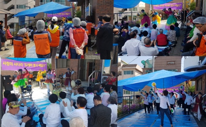 [세계타임즈 이장성 기자] SNS 대전시 봉사단체 사랑의 사다리 밴드(리더 이정제)는 20일 오전11시, 대덕구 중리동 한촌경로당(회장 이종순)에서 위문공연 및 삼계탕 봉사로 사회적 효행을 실천하였다.