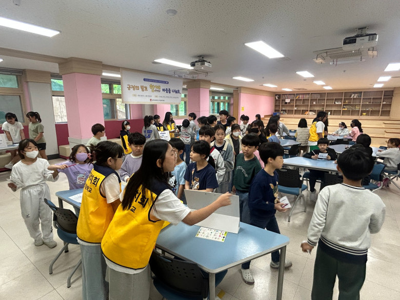 [시흥시 세계타임즈=송민수 기자] 군자초등학교(교장 우승룡)는 4월 23일부터 25일까지 3일간, 전교생을 대상으로 인성브랜드 집중 실천 주간을 맞이하여 ‘바른 언어 사용 캠페인’을 실시하였다. 이번 캠페인은 학생자치회가 주도하여 긍정의 말을 나누고 우정을 키우는 부스형 활동으로 진행되었으며, 학년별로 일정을 나누어 후관 1층 드림랜드에서 운영되었다.
