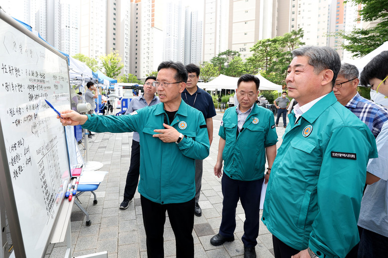 인천시의회는 최근 정해권 의장과 김상섭 의회 사무처장이 서구 청라동 아파트 지하 주차장 전기차 화재 현장을 방문, 피해 주민과 복구 기관 관계자들을 만나 격려와 피해 상황을 점검했다고 7일 밝혔다.