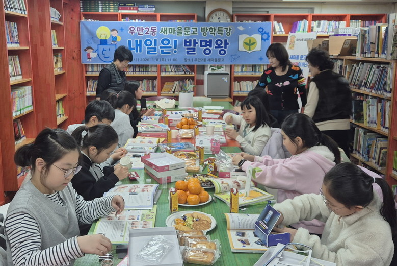 [수원시 세계타임즈=송민수 기자] 수원시 팔달구 우만2동 새마을문고회(회장 김옥순)는 지난 8일 우만2동 행정복지센터 2층 새마을문고에서 관내 학생들을 대상으로 겨울방학 맞이 ‘내일은 발명왕’ 특강을 진행했다.
