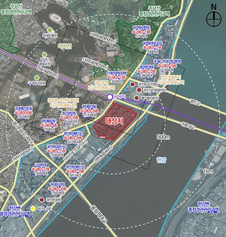 | ▲ 위치도 (광진구 광장동 218-1번지 일대) |