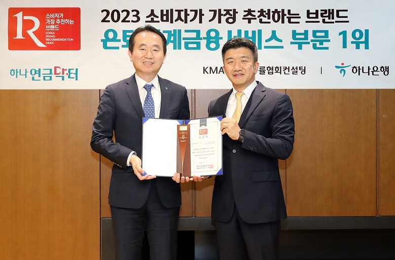 [세계타임즈 = 이송원 기자] 하나은행은 한국능률협회컨설팅(이하 KMAC)에서 주관하는 ‘소비자가 가장 추천하는 브랜드’ 은퇴설계 금융서비스 부문 1위에 퇴직연금 전문 브랜드 『하나 연금닥터』가 선정됐다고 밝혔다.