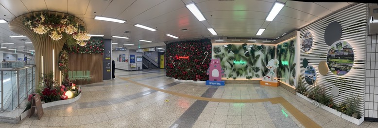 크리스마스 장식과 포토존 등을 설치해 새로운 볼거리를 제공하고, 기온 하강으로 관리가 어려운 벽면녹화 구간에는 감각적인 디자인의 가림막을 적용해 공간 완성도를 높였다.