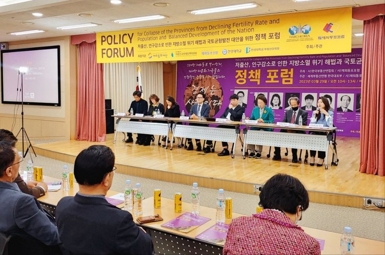 [세계타임즈 백진욱 기자] 사단법인 재외동포포럼(이사장 조롱제)과 사단법인 한국부동산연합회(회장 지태용)가 주최하고 세계부동산연맹 한국대표부가 주관한 ‘저출산·인구감소로 인한 지방소멸 위기해법과 국토균형방전대안’ 정책포럼이 지난 3월 29일 서울 여의도 이룸센터 이룸홀에서 개최됐다.