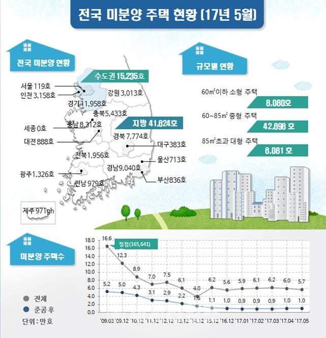 [세계타임즈 심귀영 기자]5월 전국 미분양 주택 물량이 전월대비 5.7% 감소했다.