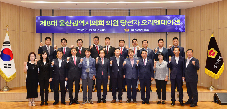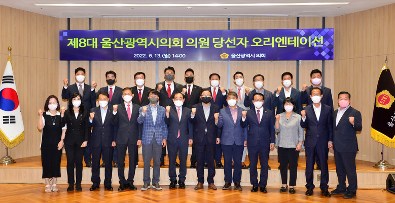 [세계타임즈=울산 이호근 기자] 울산광역시의회는 13일 오후 2시 의사당 1층 시민홀에서 지난 6.1 지방선거에서 당선된 시의원 22명과 의회사무처 간부 공무원이 참석한 가운데 제8대 울산광역시의회 의원 당선자 오리엔테이션을 실시했다.