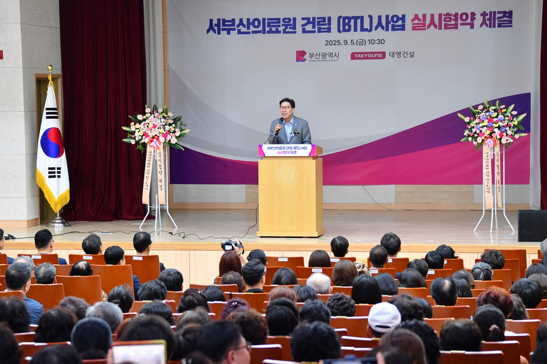 ◈ 이번 실시협약 체결을 통해 사업자 지정은 물론, 실시설계 수립·승인 등 제반 절차를 거쳐 내년(2026년) 착공 [세계타임즈=부산 용우 기자] 부산시(시장 박형준)는 오늘(5일) 오전 10시 30분 서부산의료원 건립 예정 부지 인근인 사하구청 제2청사 대강당에서 서부산힐링플래닛(주)과 '서부산의료원 건립 임대형민간투자사업(BTL) 실시협약 체결식'을 개최했다고 밝혔다.