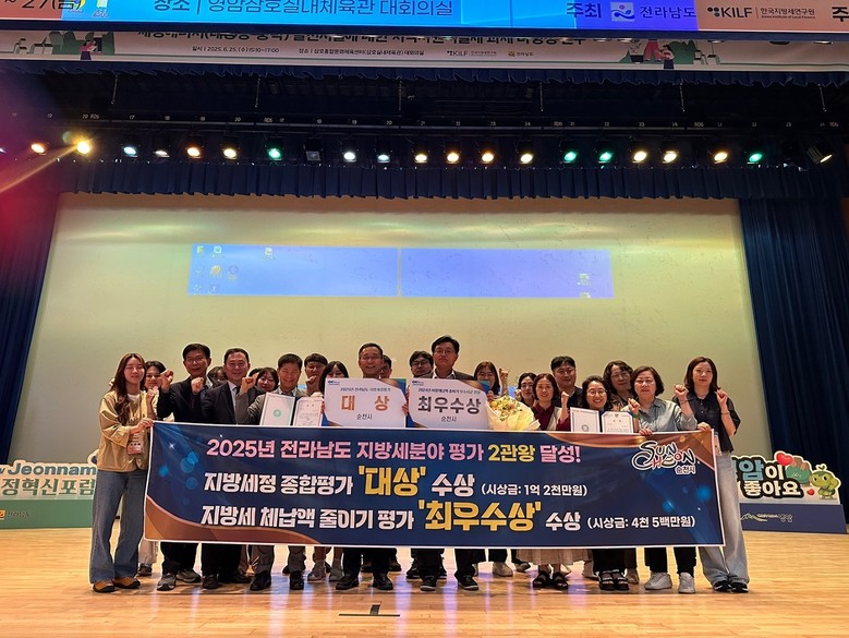 시는 지난 25일, 영암군 삼호종합문화체육센터에서 열린 2025 전남도 지방세정 혁신포럼에서 2개 부문에 대한 기관 표창을 수여받았다.