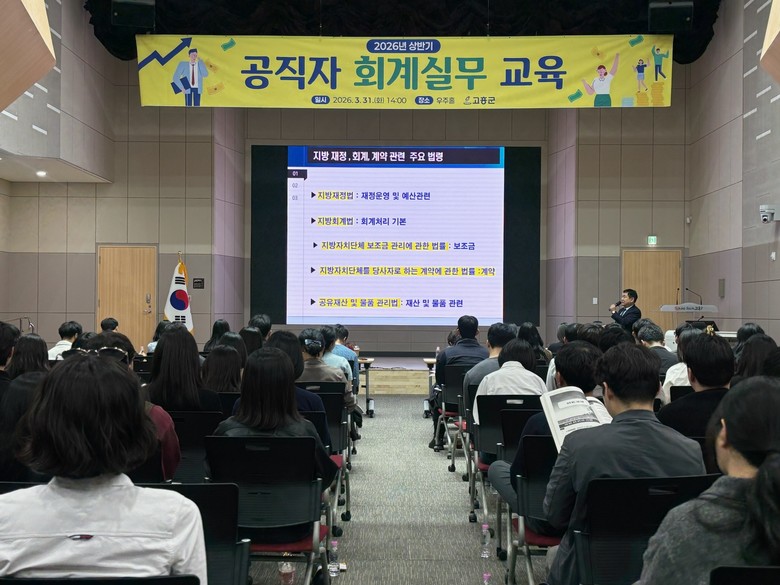 [고흥군 세계타임즈=우덕현 기자] 고흥군(군수 공영민)은 지난 3월 31일 군청 우주홀에서 공직자의 회계업무 전문성 강화와 투명하고 효율적인 재정 운영을 위해 ‘2026년 상반기 공직자 회계실무 교육’을 실시했다고 밝혔다.