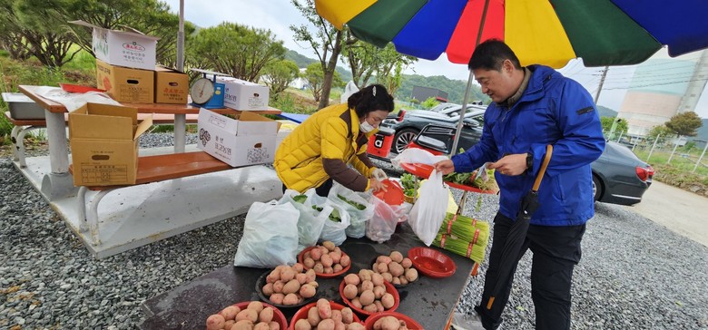 이번 장터는 노호2리 주민들이 직접 재배한 감자와 미나리, 취나물 등 5개 품종의 농산물을 방문객들에게 정직한 가격으로 판매했다.