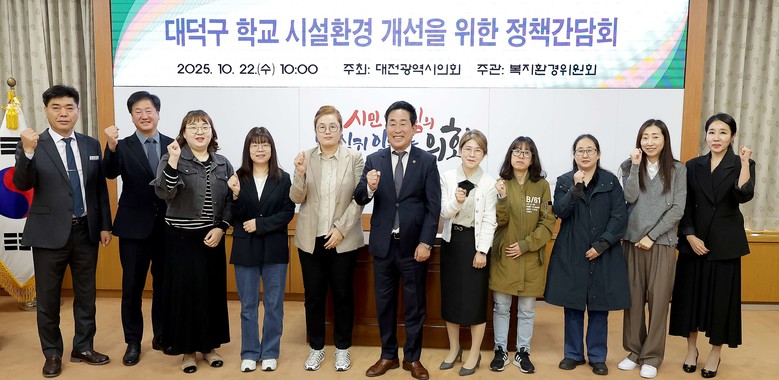 [대전 세계타임즈=이채봉 기자] 대전시의회는 22일 시의회 소통실에서 ‘대덕구 학교 시설환경 개선을 위한 정책간담회’를 개최했다.