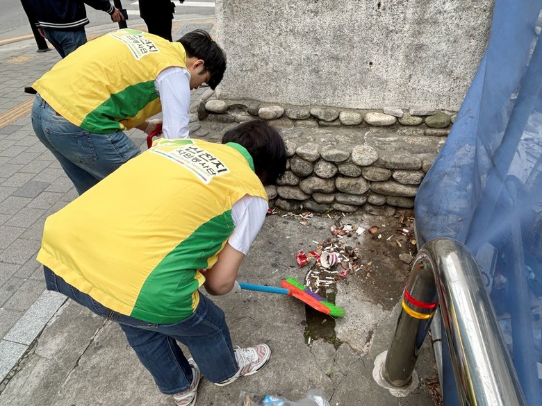 | ▲ 지난 21일 신천지자원봉사단 동작지부가 여의대방로 일대에서 거리 청소 봉사 활동을 진행한 가운데 자원봉사자들이 대림사거리 인근에서 쓰레기를 수거하고 있다. [사진제공 = 신천지자원봉사단 동작지부] |