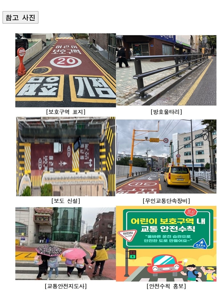 첫째, 보호구역 관리의 기초를 강화하기 위한 보호구역 실태조사를 실시해 시설 현황 파악 후, 사고 발생 위험요소를 사전에 분석하고 개선이 필요한 구간을 체계적으로 정비한다. 보행약자 인구 변화와 교통사고 특성을 반영한 보호구역 교통안전 확보 기본계획도 수립해 중장기적인 정책 방향을 마련한다.