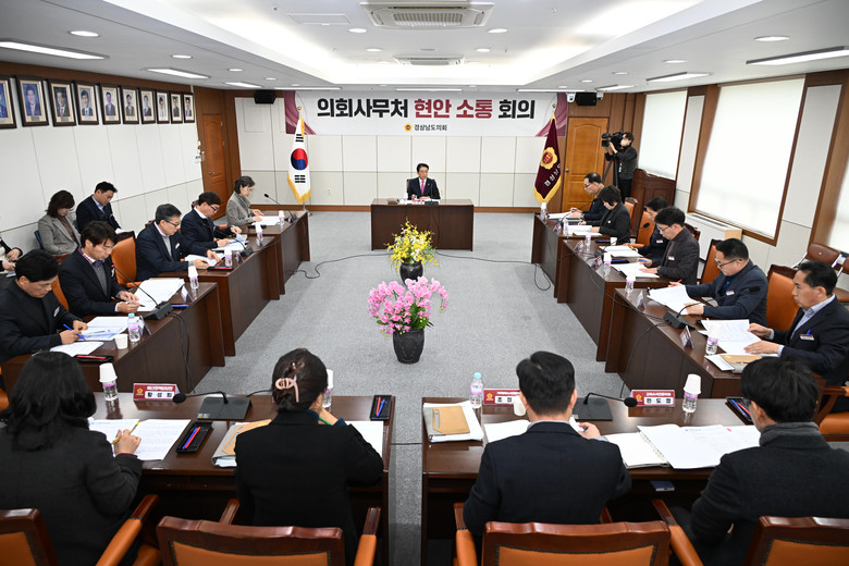 [경남 세계타임즈=최성룡 기자] 최학범 경상남도의회 의장은 6일 의정회의실에서 의회사무처 전 간부들이 참석한 가운데 을사년 첫 현안소통회의를 열고 지역경제 회복과 민생안정을 위한 협력 방안 등을 모색했다
