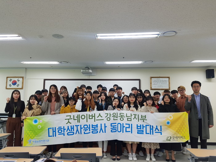 이상욱 굿네이버스 강원동남지부장은 “대학생자원봉사동아리와 상호협력 파트너십을 형성하여 지역사회 내 아동의 안전과 권리를 보호하기 위한 사업을 적극적으로 진행해 나갈 예정”이라고 전했다.