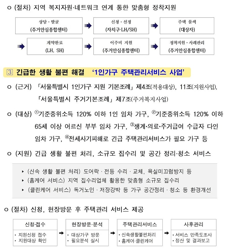 한편 서울시는 1인 가구 주거 안전관리와 생활불편 해소를 지원하는 생활밀착형 주거복지 ‘1인가구 주택관리서비스’도 운영중이다.