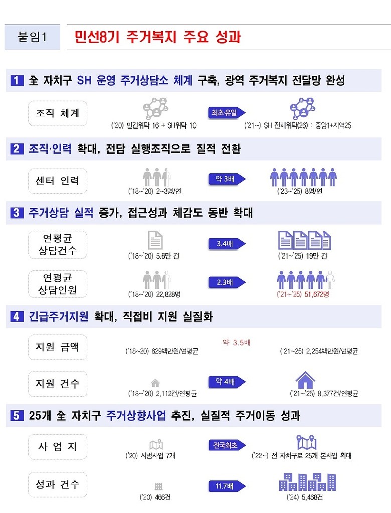 - ‘주거상담’, 연평균 5만 6천→19만건으로 3배 증가…5만 1천명 맞춤형 주거복지 연계