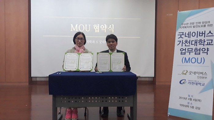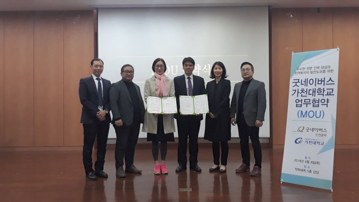김기영 굿네이버스 인천본부장은 “이번 협약으로 가천대학교와 함께 지역사회에 좀 더 전문적인 서비스를 전달 할 수 있을 것으로 기대하며 함께 협력하여 우수한 사회복지 전문 인력을 양성해 나가겠다”고 이야기했다.