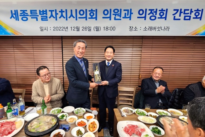 [세종 세계타임즈=이채봉 기자] 세종특별자치시의회(의장 상병헌)는 26일 의정회(회장 황순덕) 주관으로 26일 만찬 간담회를 진행했다. 이날 간담회는 연기군의회부터 현재 제4대 세종시의회까지 전현직 의원들 간 소통하는 자리로 마련됐다.