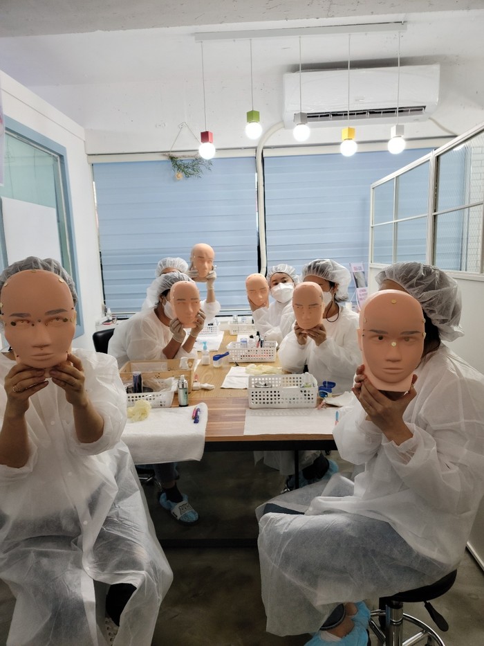 (사진=20일 국내에서 열린 '제1회 ISO17024 국제미용평가경연대회' 참가자들이 시연을 마친 후 자신의 디자인 작품을 들어보이고 있다. 서울=전국기자협회)