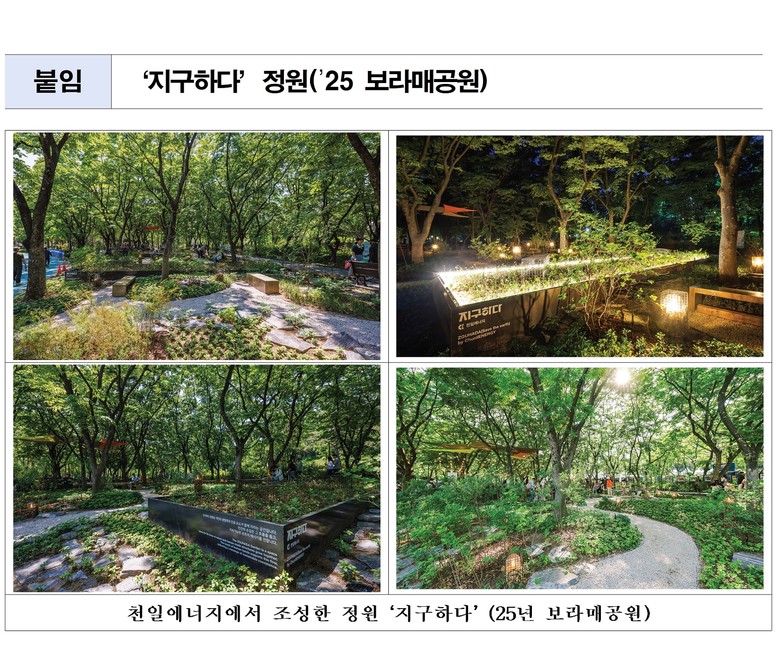 이번에 협약을 체결한 천일에너지는 보라매공원에서 열린 2025 서울국제정원박람회에서도 ‘지구하다’로 기업동행정원에 참여한 바 있다.