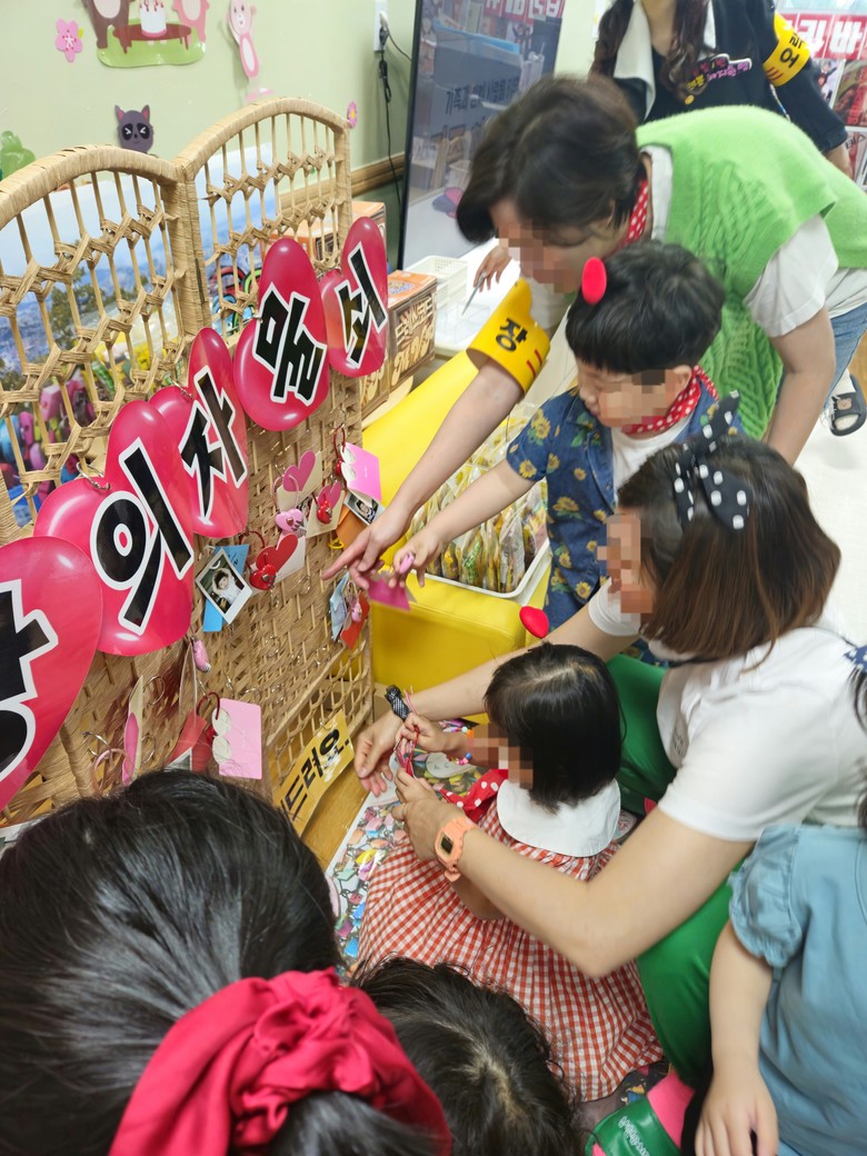 29일 둘째 날 솔빛반은 ‘마음 여행’이라는 주제를 가지고 ▲기쁨을 찾아서-스킨쉽 게임 ▲행복을 찾아서-개구리 샌드위치 ▲평온함을 찾아서-테라리움 부스를 운영했다. 엄마, 아빠와 함께 다양한 방법으로 마음을 나누는 경험해 보는 시간을 가졌으며 마지막으로 아이들이 준비한 ‘엄마, 아빠에게’라는 노래를 들으며 아이들과 학부모 모두 감동의 순간을 보냈다.