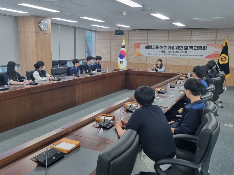 [세종 세계타임즈=이채봉 기자] 세종특별자치시의회 교육안전위원회 이소희 위원장(비례대표, 국민의힘)은 지난 12일 세종교육 선진화를 위해 새롬고 학생들과 정책간담회를 개최했다.