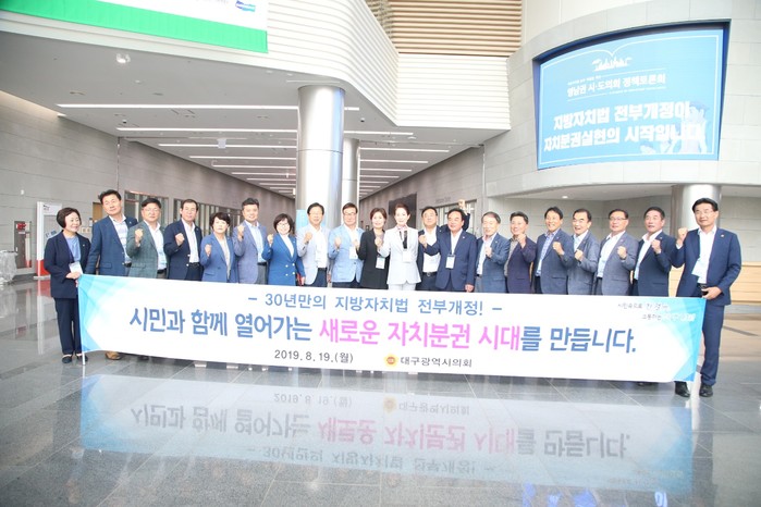 이날 토론회에 대구지역에서는 배지숙 의장을 비롯한 김혜정 부의장, 이만규 운영위원장 등 대구시의원들과 기초의원을 포함 70여 명이 동참하여 지방자치의 발전과 지방의회의 전문성, 자율성 강화를 위해 ‘지방자치법 전부개정안’의 조속한 처리를 촉구하고 지방의회 당면과제 해결에 앞장서는 단합된 모습을 보였다.