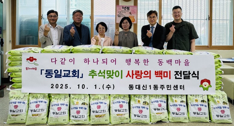 [서구 세계타임즈=이용우 기자] 부산광역시 서구 동대신1동 동일교회(담임목사 이창환)는 추석 명절을 앞둔 지난 1일, 동대신1동 주민센터(동장 하은숙)를 방문해 관내 저소득 취약계층 이웃들에게 전달할 백미 10kg 100포를 전달했다.