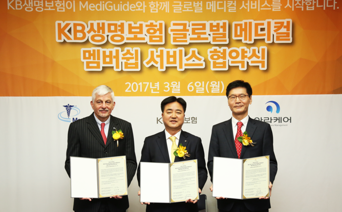KB생명보험의 일반종신보험 및 변액종신보험 가입자는 Medi Guide 국내 서비스를 담당하는 아라케어를 통해 Medi Guide 사의 네트워크 의료기관인 미국 하버드 의대, 존스홉킨스 병원 및 영국 킹스칼리지 등 의료센터의 2차 의료소견을 제공 받을 수 있다. 2차 의료소견 서비스 외에 고객이 별도로 요청하는 경우 해당 의료기관 방문 및 치료과정 등에 대한 유료서비스도 가능하다.
