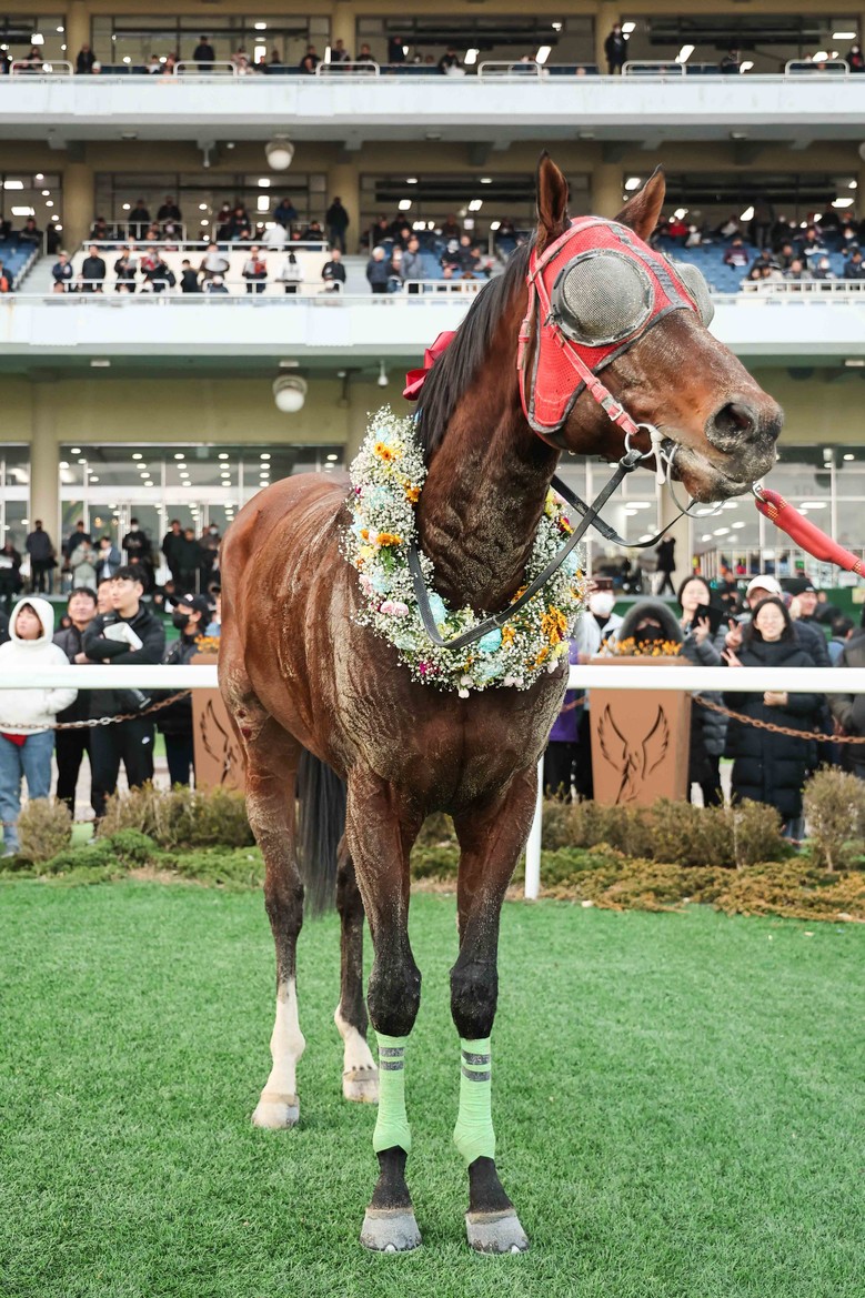 우승기록은 2분 05초 1로 대통령배 레이스 레코드였던 2분 05초 3을 1년 만에 0.2초 단축했다. 2위인 ‘글로벌히트’와의 차이는 7마신(약 17미터)으로 역대 대통령배에서 2위마와 가장 큰 차이를 기록한 그야말로 압도적인 승리였다.