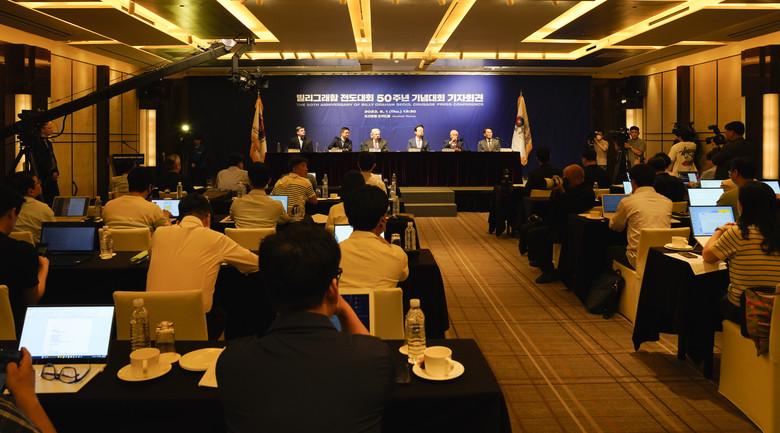(6월 1일 웨스턴조선 서울호텔에서 열린 빌리 그래함 전도대회 50주년 기자회견 현장)