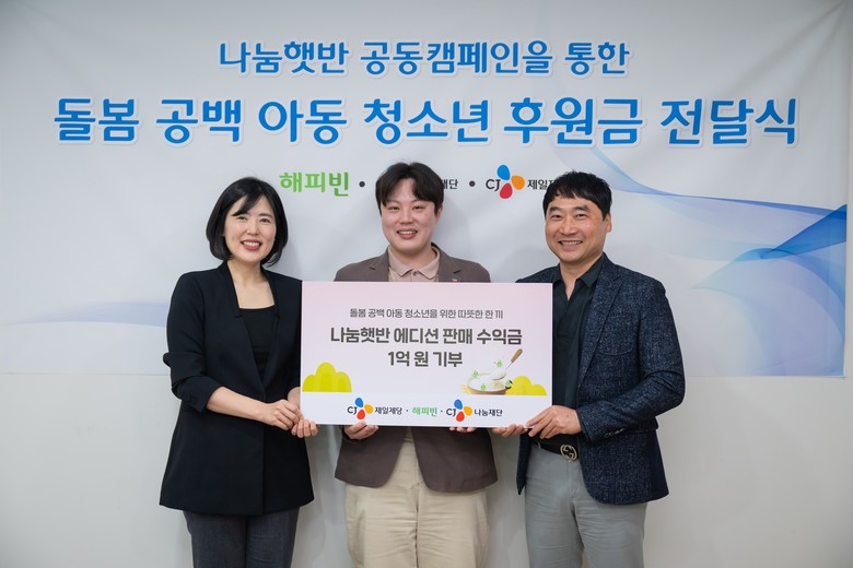 [세계타임즈 = 이현진 기자] CJ제일제당은 네이버 해피빈과 함께 ‘나눔햇반 캠페인’을 진행하고 돌봄공백 아동에게 햇반, 기부금 등 총 1억원 상당을 전달했다고 7일 밝혔다.