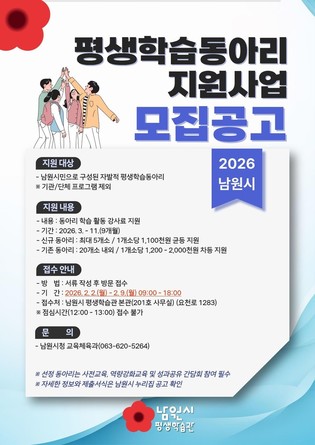 2026년도 사업은 오는 2월 사업대상자 모집공고 절차를 거쳐 3월경 신청서를 접수 받을 예정으로, 구군 실정에 따라 시행 시기는 차이가 있을 것으로 보인다.
