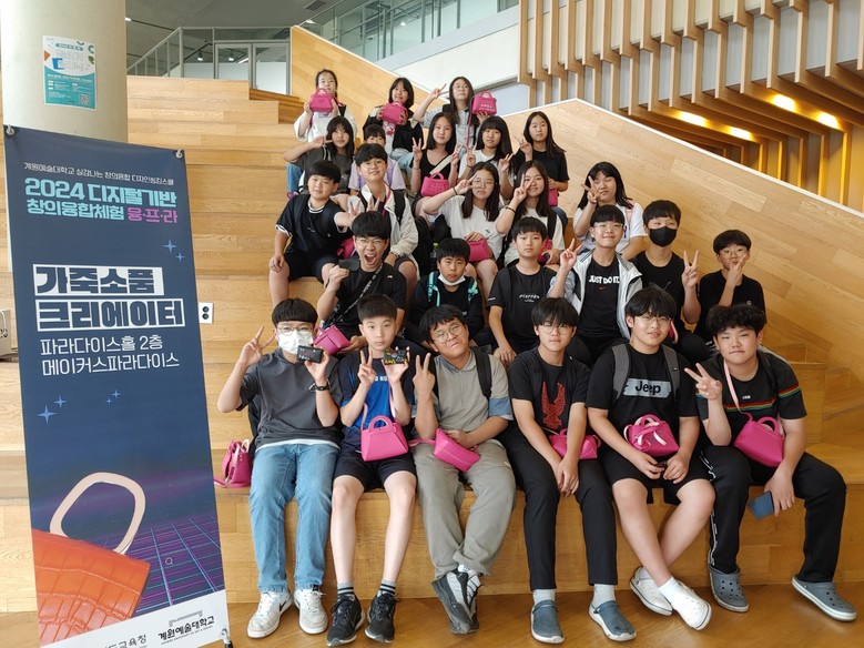 계원예술대학교 메이커스 파라다이스 홀에서 이루어지는 이번 교육은 사전 안전교육을 시작으로 가죽 소재의 이해, 가죽 소품 약칠하기, 크로스 미니백 및 카드 지갑 제작, 창작품 공유 등의 경험을 통해 전문 분야에 대한 이해와 경험으로 색다른 진로 탐색의 기회도 가질 수 있었다. 전문 강사님의 친절하고 자세한 설명을 주의 깊게 듣고, 하나하나 직접 가죽에 약칠을 하고 그림을 그리고 조립을 하면서 나만의 가죽 소품을 만드는 학생들의 모습이 제법 전문가처럼 느껴질 정도였다. 완성된 가죽 소품을 보며 “가방이 이렇게 힘든 과정을 거쳐서 만들어지는 것인지 제대로 알게 되었다.”, “내가 원하는 색으로 약칠을 하고 그림을 그린 가방이라서 그런지 너무 소중하게 느껴진다.”, “고급스러운 재료로 생활 속 활용도가 높은 제품을 만들어 실용성도 챙겼다.”, “대학교에 와서 전문 강사님과 함께 만들어 보는 기회가 얼마나 되겠는가? 이런 귀한 기회를 경험할 수 있어 매우 뿌듯하다.” 등 뜨거운 반응을 보여주었다.