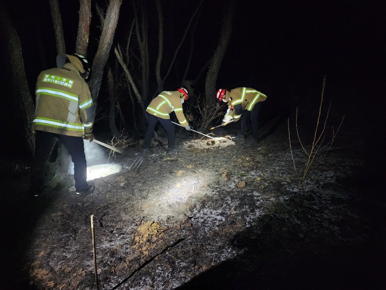 특히, 이번 산불 현장은 지난해 경북 초대형 산불 발생을 계기로 경북형 소방산불진화대 편성과 지휘작전체계 운영 매뉴얼과 산불 야간 진화 지휘 작전 운영체계 매뉴얼 개발에 따른 첫 시험대로 119산불신속대응팀의 진화 역할뿐만 아니라 산불지휘부장의 산불 구역 현장 지휘와 자원배분, 안전관리까지 총괄 대응체계가 안정적으로 작동된 점이 큰 성과로 평가된다.