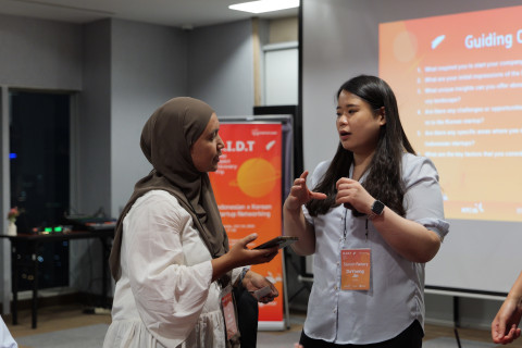 | ▲ 슬런치팩토리 진다영 CTO가 인도네시아 현지 스타트업과의 교류 네트워킹에서 협업 방안에 대해 논의하고 있다 |