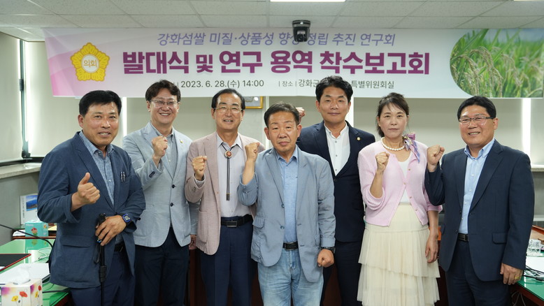 [강화군 세계타임즈=심하린 기자] 강화군의회(의장 박승한) 의원연구단체인 ‘강화섬쌀 미질·상품성 향상 정립 추진 연구회’는 지난 28일 특별위원회실에서 연구회 발대식 및 강화섬쌀 미질 및 상품성 향상으로 소비촉진을 통한 농업인 소득증대방안 연구용역 착수보고회를 개최했다고 밝혔다.