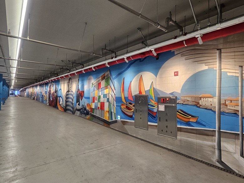 | ▲ 레일 조명이 설치된 지하 공공보행통로 내 피카소 벽화거리 |