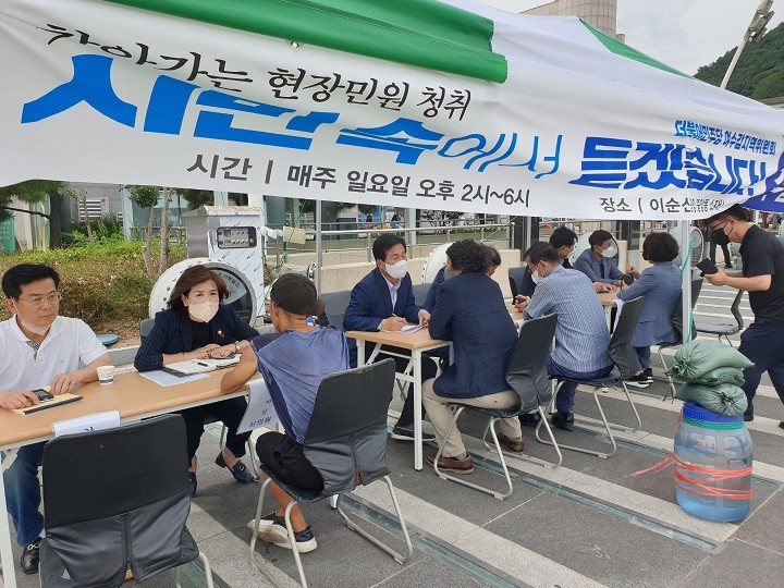 20일 주철현 의원에 따르면 매주 일요일 오후 2시~6시 여수 중앙동 이순신광장에서 현장 민원 청취 '시민 속에서 듣겠습니다"를 진행하고 있다.(사진=의원실 제공)