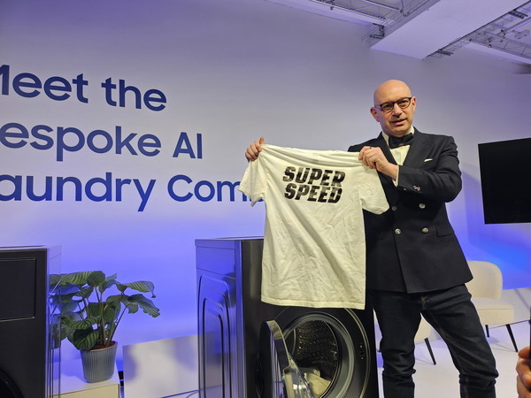 | ▲삼성전자 구주 총괄 최고마케팅책임자(CMO) 벤자민 브라운이 14일(현지시간) 독일 베를린에서 유럽 전역에서 모인 인플루언서와 미디어를 대상으로 '비스포크 AI 콤보'를 소개하고 있다. (사진 = 삼성전자 제공) |